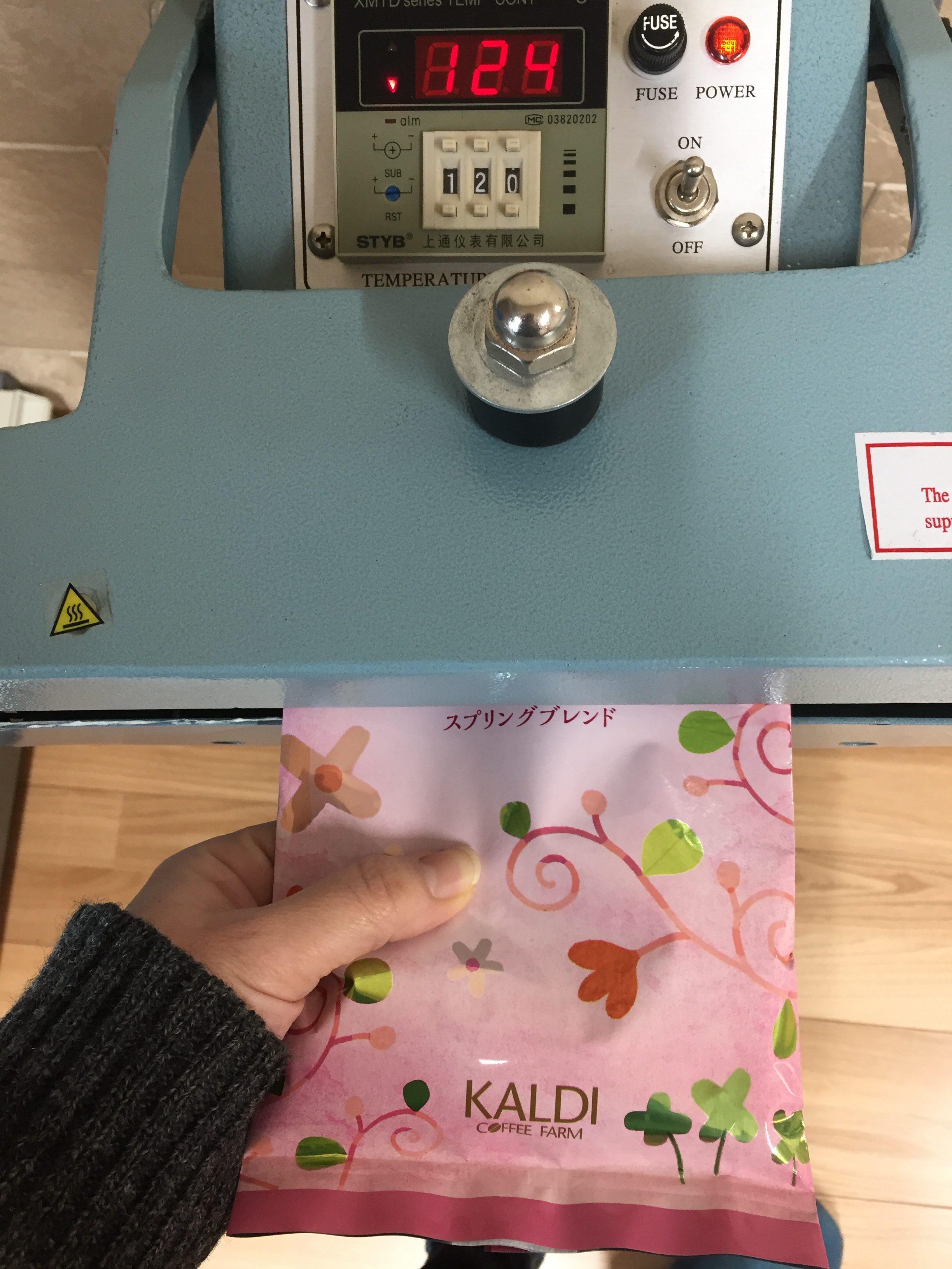 カルディコーヒー豆の袋をシールしました。