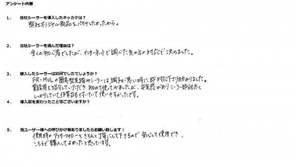 三邦の簡易型タイプ足踏みシーラー、業務タイプシーラーのユーザー様よりアンケートご回答頂きました!